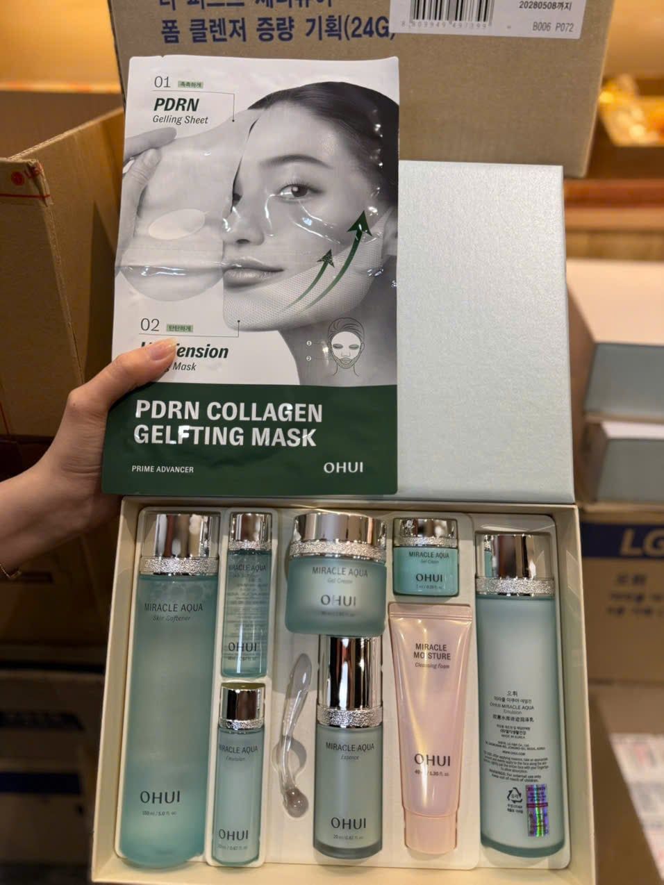 - 1 Kem dưỡng Ohui Aqua Gel 30ml + 7ml: Kem dưỡng dạng gel, giúp dưỡng ẩm sâu, giảm tình trạng khô da, mang lại làn da mịn mượt