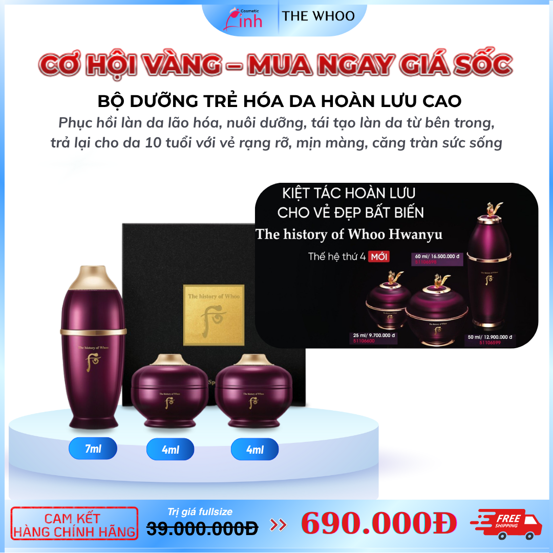 Bộ Dưỡng Trẻ Hóa Da Whoo Hoàn Lưu Cao Whoo Hwanyu Mini 3sp