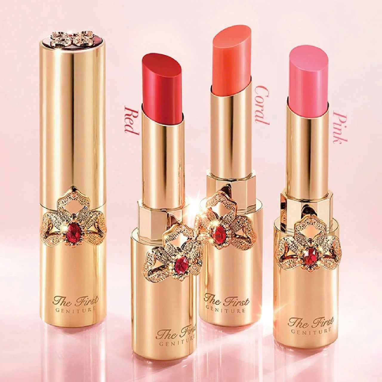 - Bộ Son OHUI The First Geniture chứa chiết xuất hoa mẫu đơn với hiệu năng chăm sóc, dưỡng ẩm, trẻ hóa và làm dịu môi.