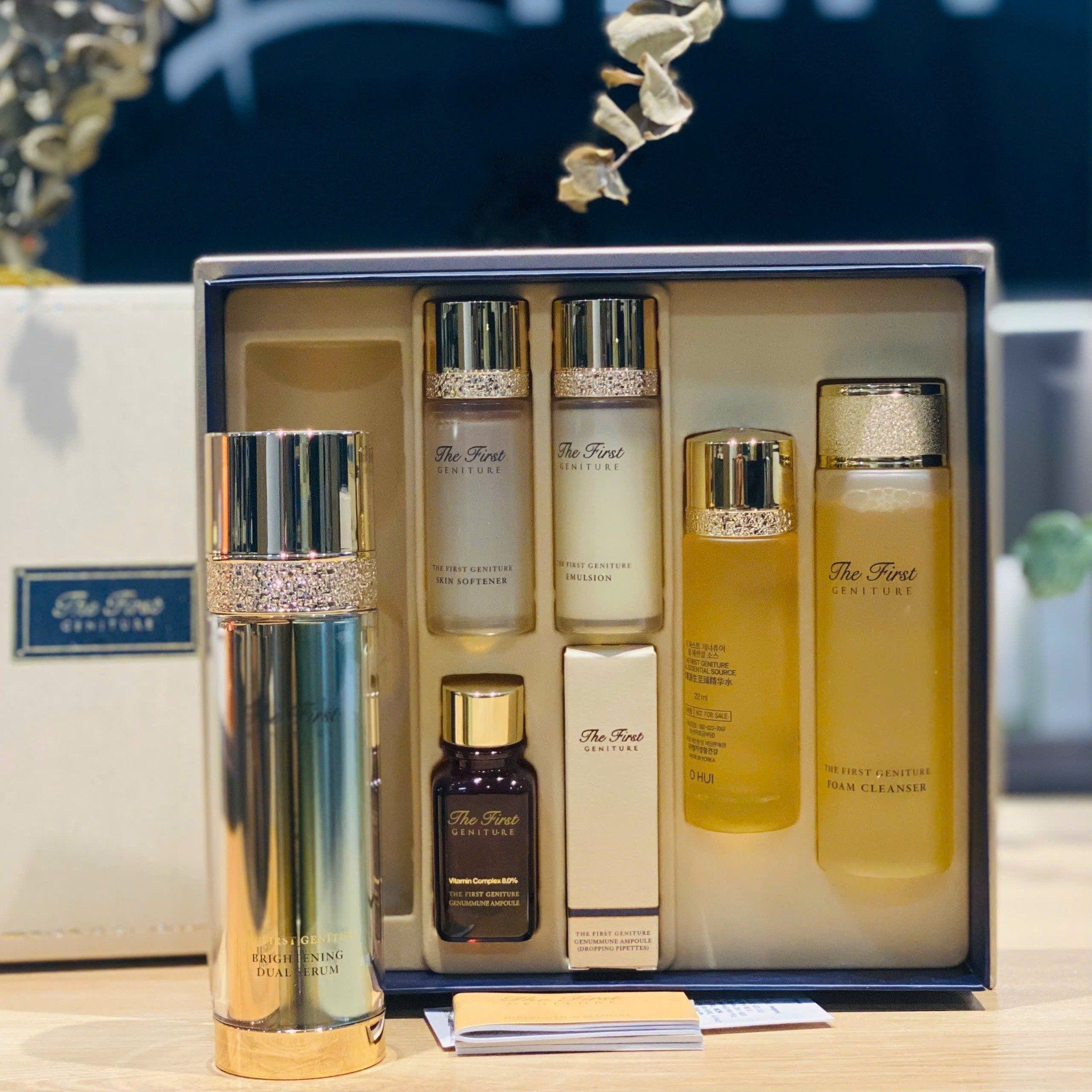 Sử dụng bộ sản phẩm theo thứ tự các bước dưỡng: Sữa rửa mặt (1) - Nước cân bằng Skin Softener (2) - Nước thần Ohui The First Geniture Cell Essential Source (3) - Tinh chất The First Geniture Brightening Dual Serum (4) - Ampoule Ohui The First Geniture (5)- Sữa dưỡng Ohui The First Geniture Emulsion (6)