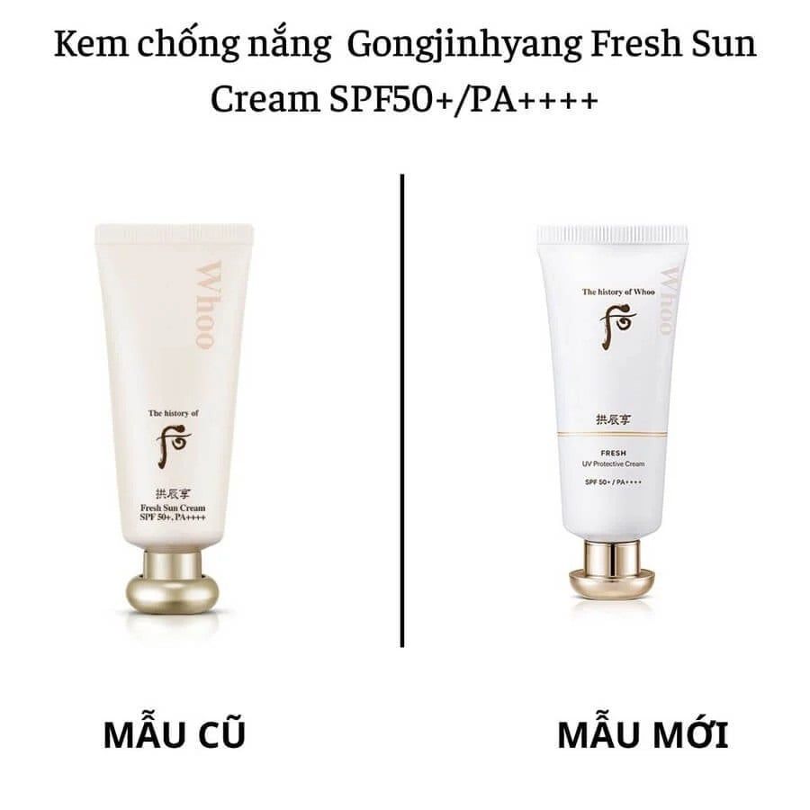 - Kem chống nắng Whoo Fresh Sun Cream SPF 50+/PA+++ với nhiều thành phần dưỡng.