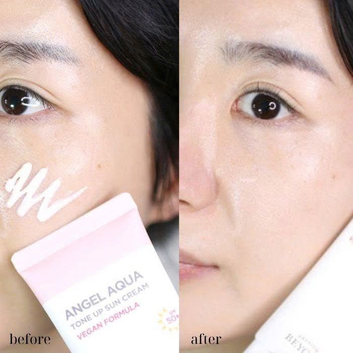 Kem chống Nắng dưỡng trắng nâng tone Beyond Angel Aqua Tone Up Cream với công thức thuần chay được chứng nhận bởi Viện thuần chay Hàn Quốc