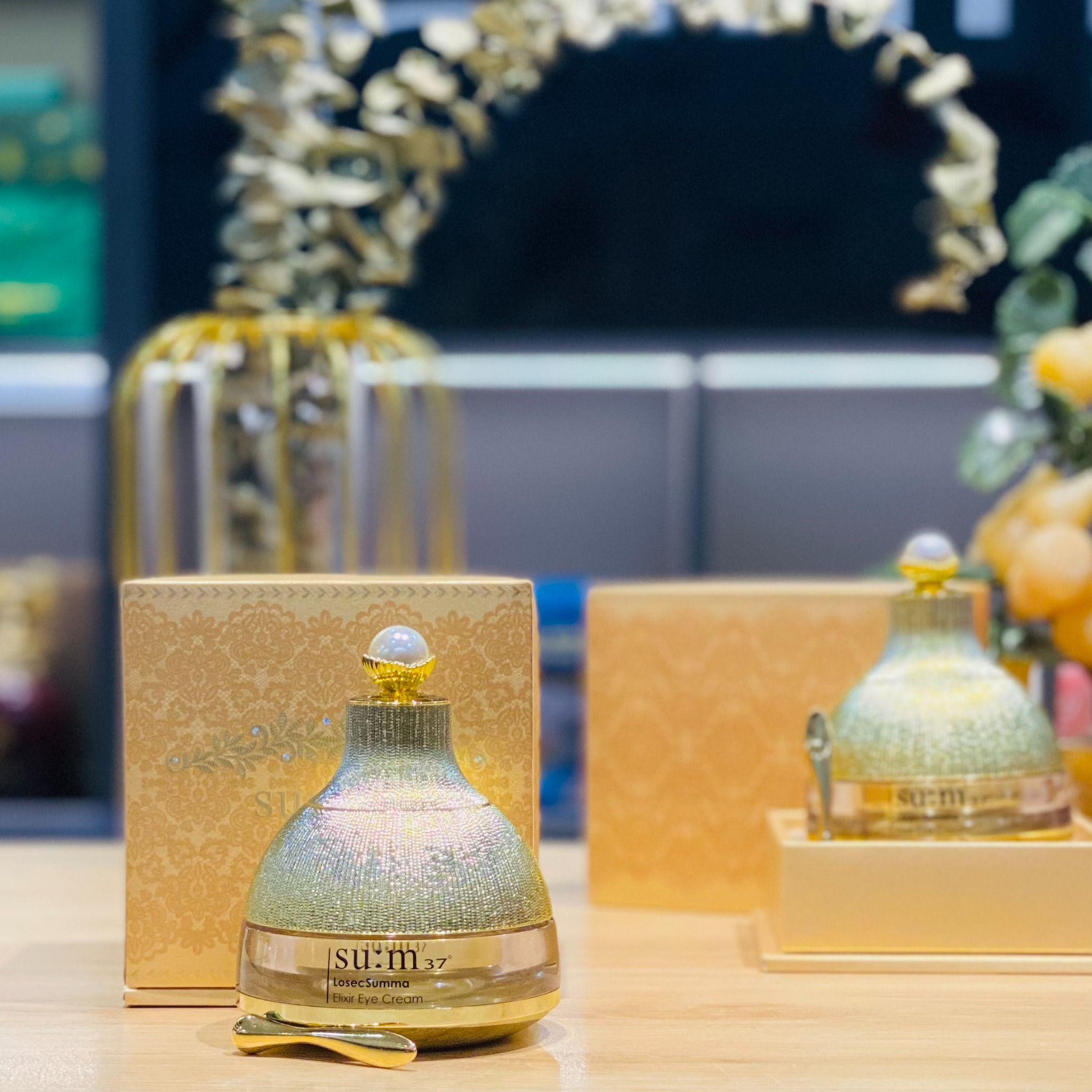 - Kem dưỡng chống thâm vùng mắt Su:m37° Losec Summa Elixir Eye Cream có chứa các thành phần dinh dưỡng được lên men từ 10 loài cây giúp bạn duy trì làn da săn chắc xung quanh vùng mắt bằng cách cung cấp năng lượng thu được từ quá trình lên men tự nhiên lâu dài, giúp xóa bỏ các vết châm chim, thâm mắt, bọng mắt.