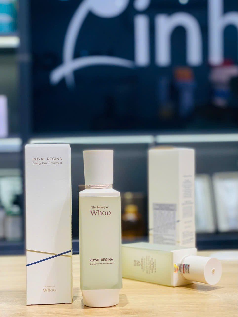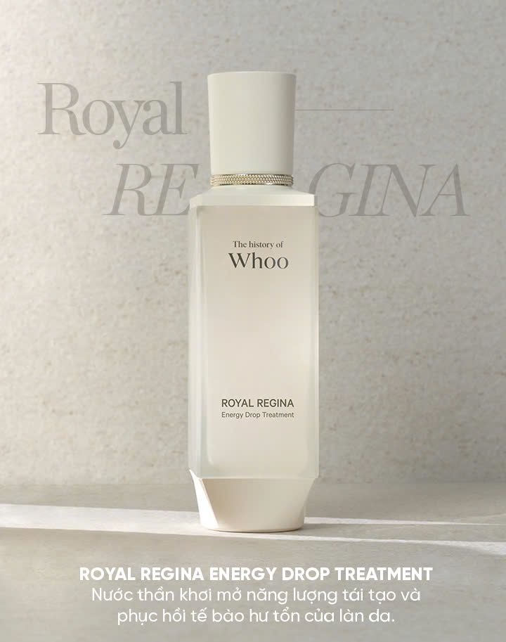 Nước thần dưỡng da The Whoo Royal Regina Energy Drop Treatment với thành phần quý giàu chất chống oxy hóa, cải thiện các vấn đề về nếp nhăn lão hóa đồng thời tăng cường độ săn chắc cho làn da.
