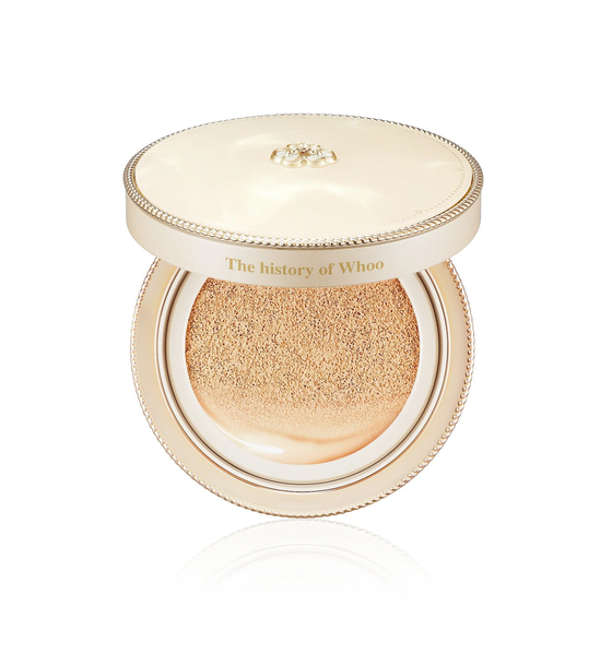 Với những nàng thích kiểu makeup nhẹ nhàng giống các cô gái của Xứ sở Kim Chi chắc chắn không thể bỏ qua một sản phẩm mang lớp nền bóng khỏe, tự nhiên là Cushion. Phấn nước Whoo Gong JinhYang Mi Luxury Golden Cushion SPF50+/PA+++ dưỡng trắng, cải thiện nếp nhăn, chống nắng với các thành phần Đông y giúp mang đến một làn da sáng và lộng lẫy nhờ các thành phần được thẩm thấu vào da ngay khi chạm vào. Sau khi dưỡng da, hãy thoa Luxury Golden Cushion và cảm nhận làn da ẩm mịn như vừa sử dụng dưỡng chất cùng với hiệu quả bám dính vượt trội