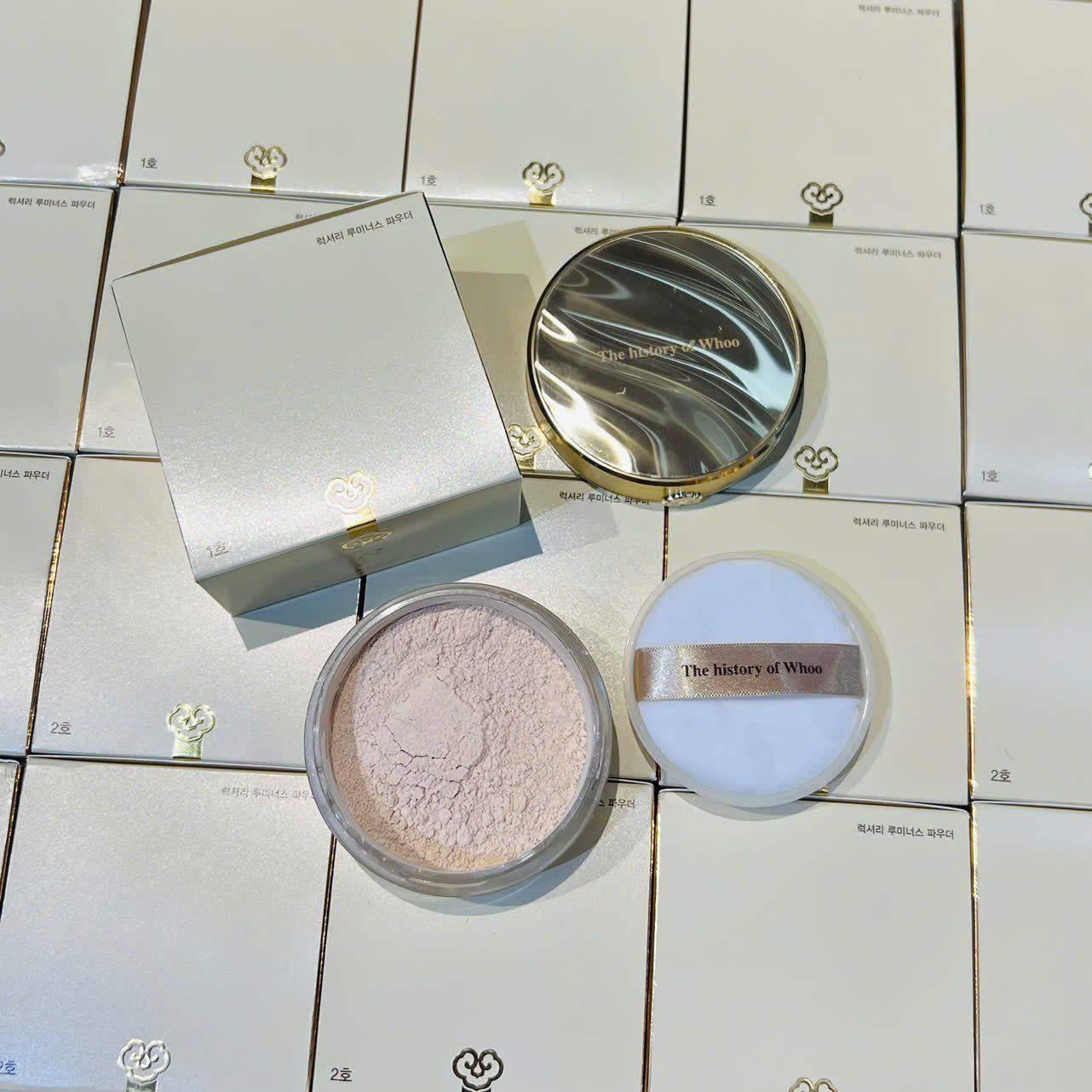 - Kết hợp giữa thảo mộc đông y hoàng cung cùng công nghệ tiên tiến. Whoo nâng phấn phủ trang điểm lên một tầm cao mới. Với Phấn phủ bắt sáng dạng bột The History Of Whoo Gongjinhyang Mi Luxury Luminous Powder.