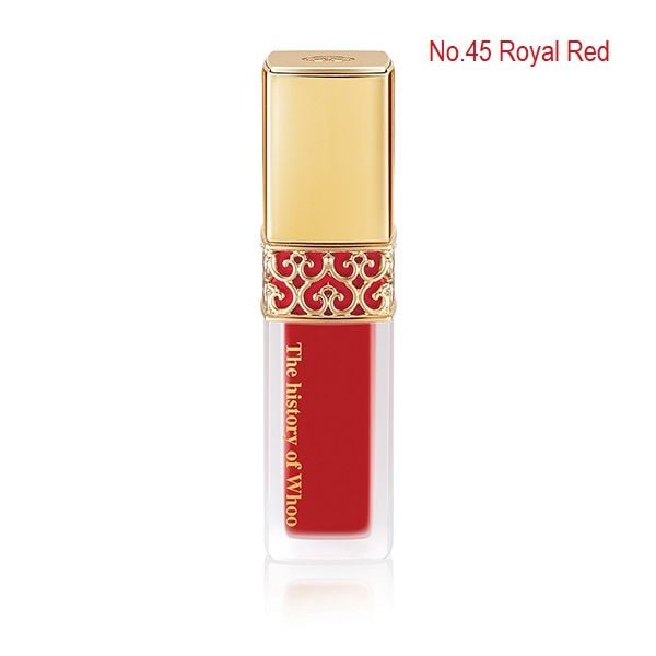 Son kem Whoo Velvet Liquid Lip Rouge bền màu, dưỡng mềm môi căng mướt. Son Kem Whoo lì siêu đẹp. Lâu trôi cho bạn đôi môi căng mọng cực khuyến rũ. Son vẫn được thiết kế theo phong các Hoàng Cung, mang lại cảm giác sang trọng quý phái khi cầm trên tay dùng. Chất son Đông Y vô cùng an toàn.