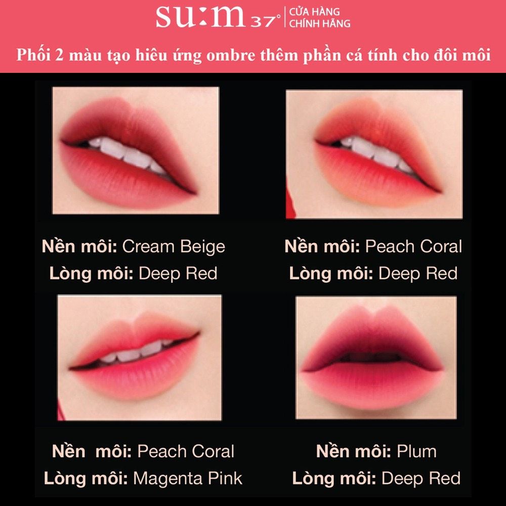 Son môi Su:m37 LosecSumma Velvet Lipstick: được chắt lọc từ vạn đóa hoa, lên men tự nhiên. Là dòng son lì , chất son mềm mịn, bền màu cho bạn một đôi môi căng màu mọng mướt không bong tróc.